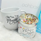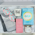 Mummy's own mug for those quiet moments before the big day and a Smug eyelash friendly eye mask, printed in pretty cherry blossom will help shut out the world whilst mum gets some much needed rest.  We have also included a sumptuous bar of Mum To Be artisan chocolate and the delightfully scented candle. Add to the joy the Calm book by Fearne Cotton and a relaxing heated wrap to make this the perfect gift box for a mum to be.