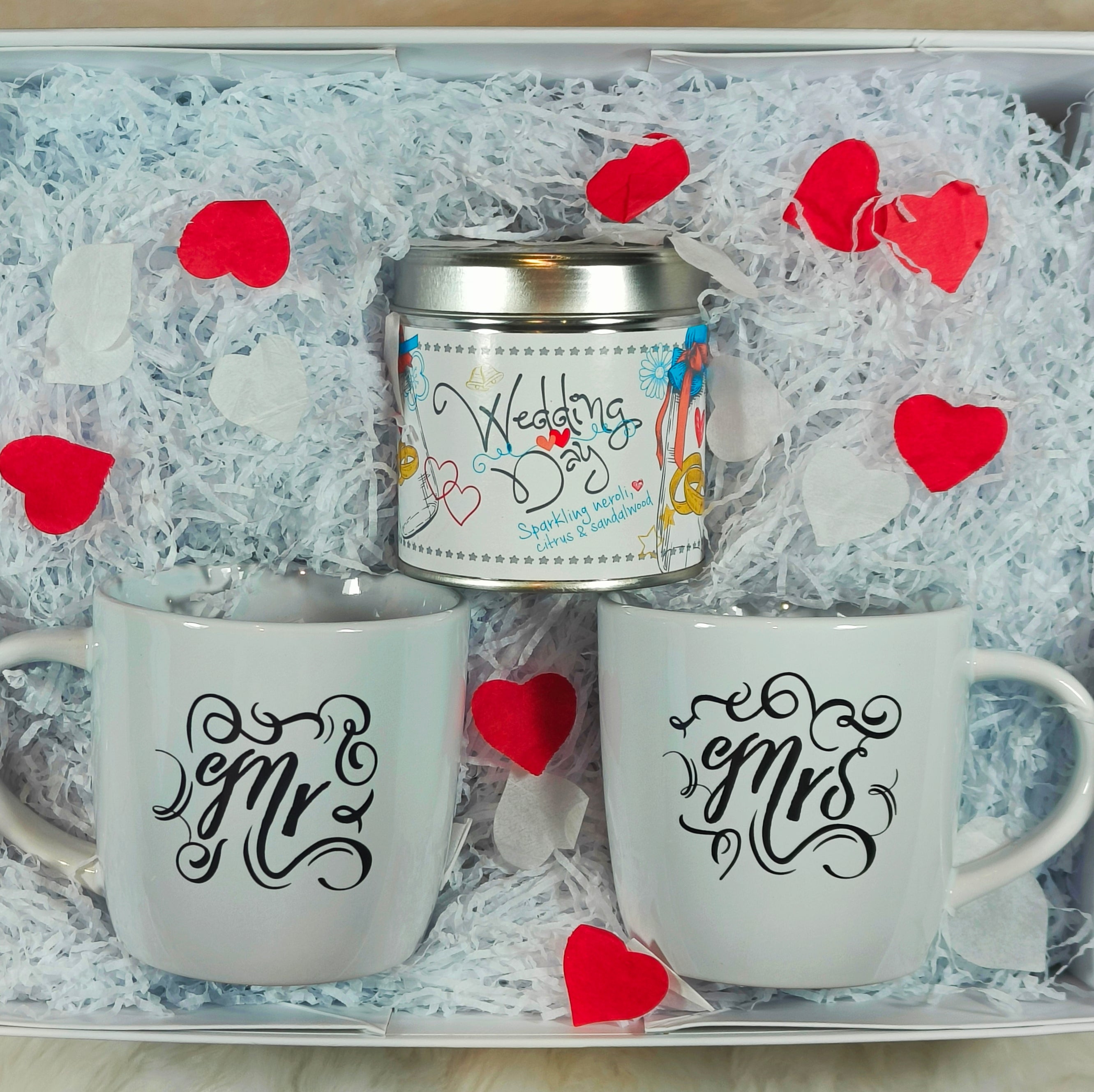 The Happy Couple can sit back, put their feet up and enjoy a relaxing cuppa in their own commemorative mugs whilst inhaling the delicious scent of our Wedding Day candle.
